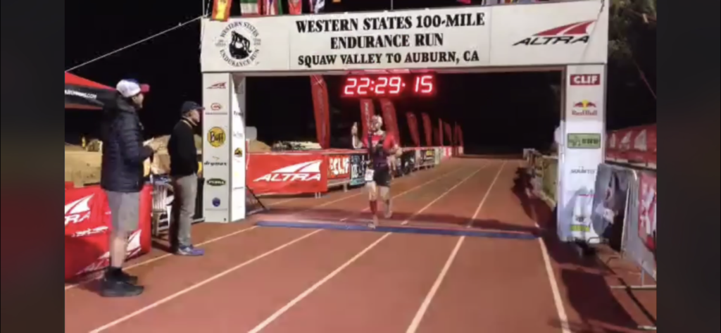 I kept pushing along. Enjoying the flats, grinding the climbs, and managing the downhills. By this time, most of the downhills hurt. My quads were so sore. I was keeping steady and passing runners as I had been since the canyons. I would drink Mountain Dew and chicken broth with noodles or rice at each aid station. I met with Jen one last time at mile 94.3, Pointed Rocks aid station. I finished my coffee. She gave me a pep talk and said, “Finish this thing!” I, once again, got my kiss and ran off into the dark. The next cool memory was No Hands Bridge. It was all decorated with christmas lights. This was mile 96.4. So close to the finish! There would be one more ridiculous climb that was difficult with so many tough miles on my legs. I could smell the finish now though and moved steadily, running as much as I could. I took a quick shot of Mountain Dew at Robie Point and ran hard. Then I was on pavement! Then into town! It was almost 3:30 am and a few people were still out. It was really hard to tell where I was supposed to run. Then I found the small markings on the road itself that said, “WS100”. Funny, this was the hardest point to find the course, the last mile. Anyway, I crossed a short bridge, ran a short space, and I was on the track! I heard them announcing my name! I ran hard. I don’t walk through finish lines! I ran with what I had left. I saw my time, 22:29:10.....11.....12.....13....14.....15....16...I pointed up in the air to give glory to God as I crossed the finish! I was a Western States 100 silver buckle finisher!!!! I was so excited….and exhausted! I got my finisher medal and Jen met me for a finisher kiss! Richard, who manages our Altra Red team, came and gave me a congratulatory high five and hug! I was excited, tired, and relieved to have gotten it done!