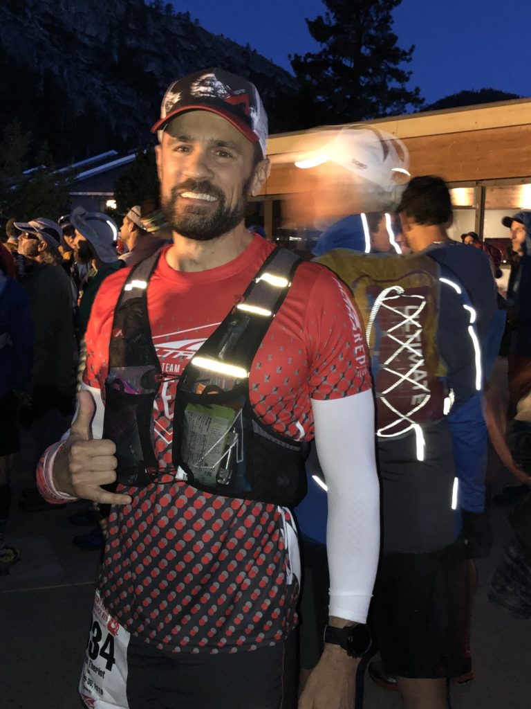 We arrived at the race start, checked in and waited. My nerves! I was ready, but nervous. We sat down for me to put my bib next to a tall dude with a mustache. Turns out it was Matt Daniels, the first sub 4 miler to do this thing. He was super cool and we had a good visit with him and Joshua, his crew captain/pacer (he ended up taking 4th place in his first 100!)